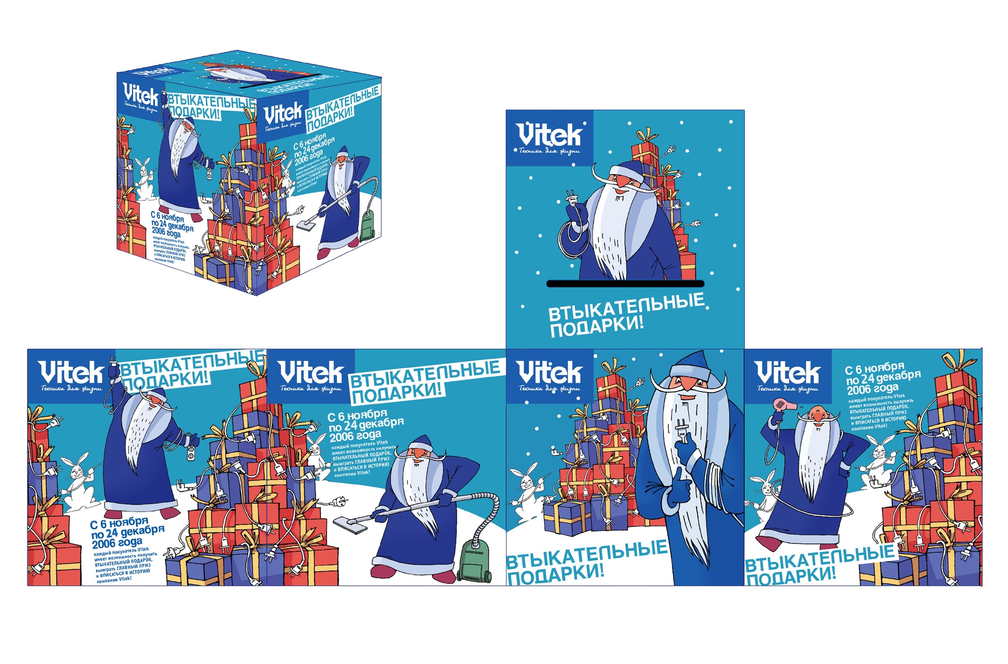 BTL-акция "Втыкательные подарки!" агентства LBL Media для VitekС 6 ноября по 24 декабря в 70-ти городах России, включая Москву и Санкт-Петербург, агентство "ЛБЛ Медиа" проводит масштабную промо-акцию компании VITEK - "Втыкательные подарки!". Название акции обыгрывает сразу два смысловых контекста - рациональный ("втыкательные" - работающие от сети) и эмоциональный, позитивно "заряженный" ("втыкательные!" - классные подарки!). Агентством "ЛБЛ Медиа" были разработаны концепция и механика проведения промо-акции, а также подготовлены рекламно-информационные материалы для оформления мест проведения предновогодней "втыкательной" акции. Концепция этого промо-мероприятия заключается в том, что каждый, кто приобрел любую технику VITEK на сумму от 1000 рублей и заполнил анкету, получает гарантированный "втыкательный" подарок, а также получает возможность участвовать в розыгрыше призов, которые проводятся каждые три недели. Также в рамках акции проходит "втыкательный" творческий конкурс "Поздравь Деда Мороза!", по результатам которого будет определен обладатель главного "втыкательного" приза - сертификата на покупку бытовой техники VITEK на сумму 20 007 рублей. |