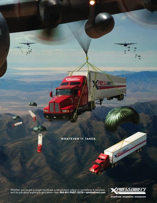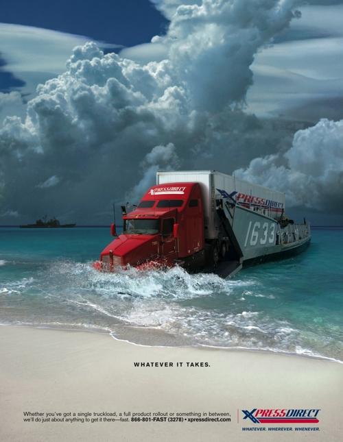 Агентство The Johnson Group USA представило пароходоавтомобили из Xpress Direct ShippingАмериканское агентство The Johnson Group разработало серию рекламных принтов для службы перевозок Xpress Direct Shipping. Идея заключается в том, что эта компания доставит ваш груз быстро и надежно, независимо от места назначения, будь то горы, море или снежная пустыня. Агентство: The Johnson Group, Chattanooga, Tennessee, USA Творческий директор: Mike Polcari Арт директор: Chuck Morrow Копирайтер: Gari Cruze |