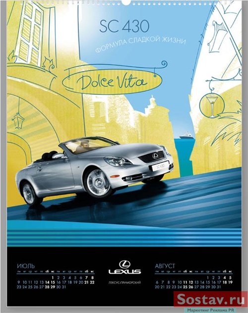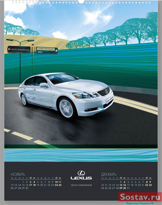 Конкурсный календарь. Jet Design для "Лексус-Приморский"Рекламное агентство Jet Design разработало календарь для официального дилера Lexus «Лексус-Приморский» под названием «Lexus. Формула идеального автомобиля». Как рассказали AdLife.spb.ru в агентстве, основная задача, которая стояла перед Jet Design, создать календарь не с целью отображения статуса автомобилей Lexus, а как приятный шутливый подарок клиентам и покупателям. Основная идея календаря – в свободной графической манере передать индивидуальность каждой модели автомобиля. «На некоторые объекты календаря нанесён лак, например, на логотип и изображение автомобиля. Лаком выделены отдельные графические элементы с целью передачи материала (снег, дождь, стекло), а также для придания объемности некоторым объектам (мокрая дорога, неоновые вывески, указатели)», - пояснили в агентстве. ![]() ![]() ![]() adlife.spb.ru |