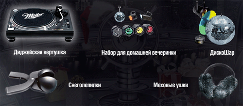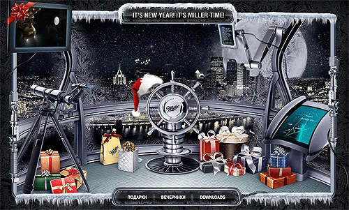 Miller прячет подсказки на YoutubeПивной бренд Miller проводит новогоднюю интегрированную промокампанию, объединяющую телевизионные ролики, печатную рекламу и специальную акцию в интернете - все три части сделаны в едином стиле. В рамках интернет-кампании силами агентства Victory S.A. открыт новогодний промосайт, посетителям которого предлагаюся всевозможные новогодние подарки от Miller.![]() Подарки достаточно необычны, но точно соответствуют имиджу пива Miller: это "актуальный призы для клабберов и тусовщиков" - проигрыватели, "дискошары", мини-прожекторы разных цветов, а также забавные устройства для игр на открытом воздухе - снеголепилки и меховые шапки-наушники: