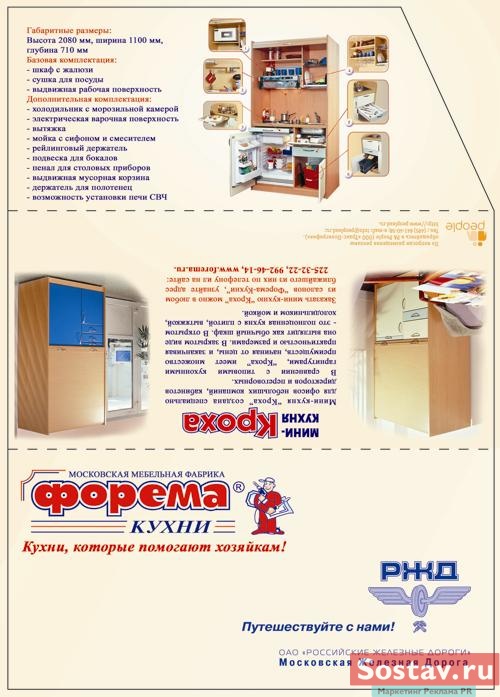 Брендированные конверты агентства People напомнят пассажирам об уютных кухняхВ декабре на Ленинградском вокзале проводится рекламная кампания бренда "Форема-Кухни" на конвертах для железнодорожных билетов. Акция организована и проводится совместно с рекламным агентством People, которая специализируется на реализации проектов, связанных с использованием рекламных возможностей предприятий МЖД. Кампания будет проходить в декабре 2006 года. Все железнодорожные билеты, продаваемые в кассах Ленинградского вокзала в этот период, вкладываются в брэндированные конверты мини-кухни "Кроха", которую представляет компания "Форема-Кухни". ![]() Кухня в сознании россиян ассоциируется с атмосферой доверия и уюта, которую зачастую хочется перенести и на рабочее место. И не случайно был выбран данный рекламный носитель, и именно это направление движения поездов. Наибольшее количество пассажиров путешествующих по делам и бизнесу имеют своим конечным (или транзитным) пунктом назначения Санкт-Петербург. Место распространения, удобство использования красочного конверта для хранения в нем документов до конца поездки, а также целевая аудитория удачно совпадают с коммуникационной концепцией рекламной кампании мини-кухни "Кроха". |