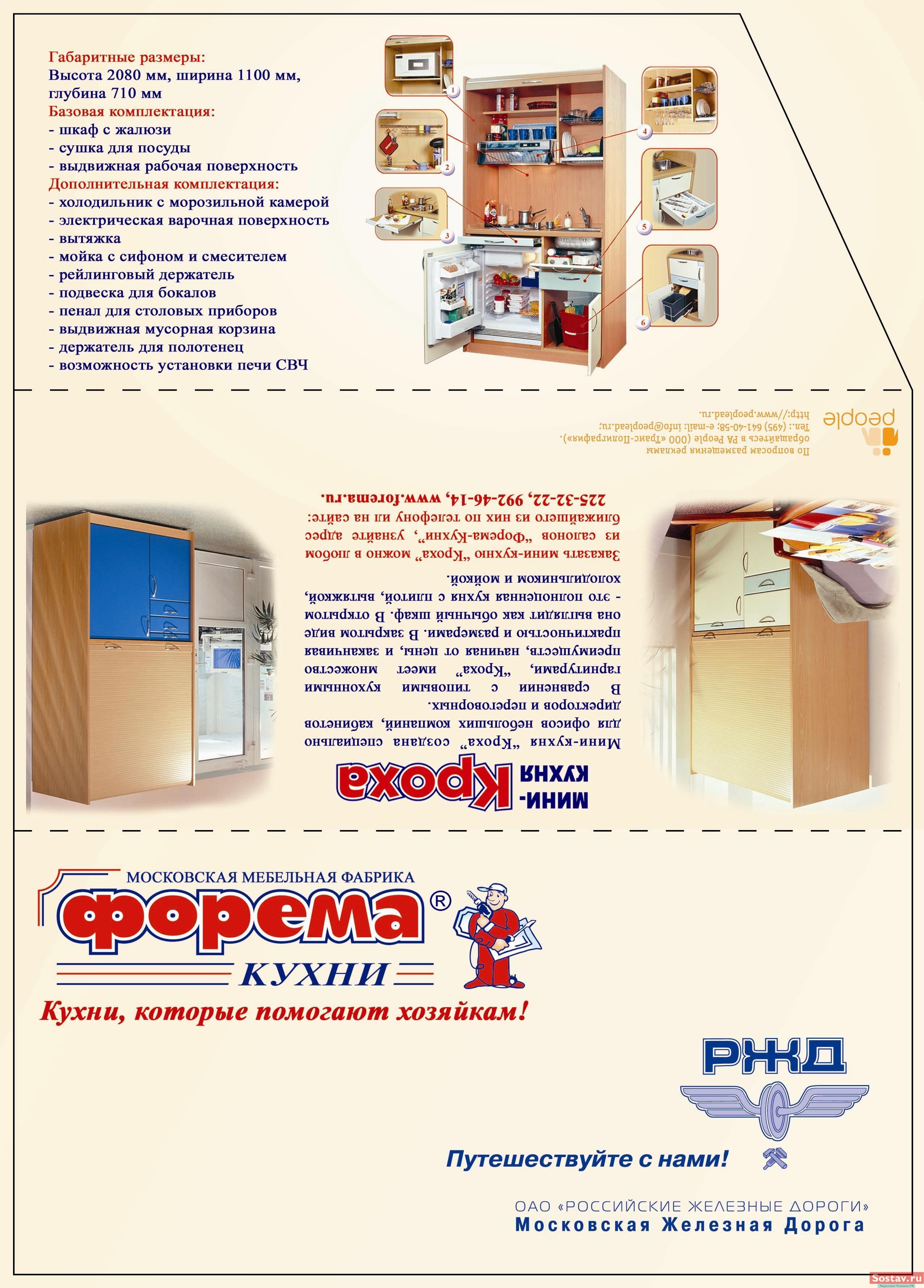 Брендированные конверты агентства People напомнят пассажирам об уютных кухняхВ декабре на Ленинградском вокзале проводится рекламная кампания бренда "Форема-Кухни" на конвертах для железнодорожных билетов. Акция организована и проводится совместно с рекламным агентством People, которая специализируется на реализации проектов, связанных с использованием рекламных возможностей предприятий МЖД. Кампания будет проходить в декабре 2006 года. Все железнодорожные билеты, продаваемые в кассах Ленинградского вокзала в этот период, вкладываются в брэндированные конверты мини-кухни "Кроха", которую представляет компания "Форема-Кухни". ![]() Кухня в сознании россиян ассоциируется с атмосферой доверия и уюта, которую зачастую хочется перенести и на рабочее место. И не случайно был выбран данный рекламный носитель, и именно это направление движения поездов. Наибольшее количество пассажиров путешествующих по делам и бизнесу имеют своим конечным (или транзитным) пунктом назначения Санкт-Петербург. Место распространения, удобство использования красочного конверта для хранения в нем документов до конца поездки, а также целевая аудитория удачно совпадают с коммуникационной концепцией рекламной кампании мини-кухни "Кроха". |