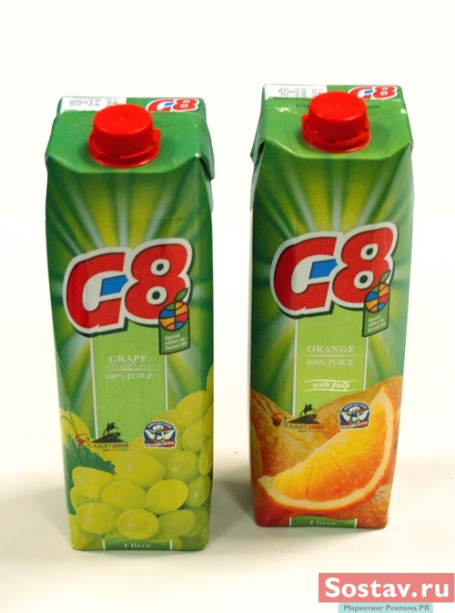 руками, соки под маркой G8 после саммита в произвоство не запускались: