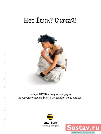 Новогодняя wap-Елка "Билайна". Новый ролик от BBDO MoscowЭстафету Мадонны, Валерии и Димы Билана приняла певица Елка. Теперь она будет рекламировать контент портала wap.beeline.ru Как всегда, реализация была доверена рекламному агентству BBDO Moscow. Елка будет петь для телезрителей с начала января на музыкальных каналах. Состав творческой группы Руководитель творческой группы - Довлатова Юля Арт-директор- Климов Андрей Копирайтер - Кофман Алла Эккаунт-директор - Захарова Анна Эккаунт-менеджер - Архипова Ирина Продюсер - Кузмичева Яна Продакшен - Студия Амбер Продюсер от продакшена - Силина Ирина Режиссер - Тишкин Алексей