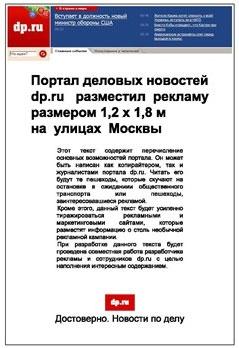 DP.RU определился с "наружкой" для МосквыПортал деловых новостей dp.ru определил победителя конкурса под названием «dp.ru в твоем окне» . По итогам конкурса dp.ru определял лучший плакат наружной рекламы своего ресурса для рекламной кампании в Москве, о чём AdLife.spb.ru писал ранее. В конкурсе принимали участие как дизайнеры-фрилансеры, так и креативные агентства двух столиц. Призом победителю – Марии Моренко (Москва) стал ноутбук. ![]() Как рассказали AdLife.spb.ru в dp.ru, работы оценивали коллегиально – коммерческий и маркетинговый отделы портала, а также редакционный состав. Выигравшая работа была прислана в последний день и соответствовала всем требованиям, заявленным в брифе. Необходимо было сделать яркий запоминающийся плакат для носителей сити-формата, работающий на рекламодателей. В dp.ru также отметили оригинальность идеи победившего плаката, которая будет использоваться после доработки с привлечением самой Марии Моренко. «В целом конкурс прошёл успешно. Мы даже не ожидали, что будет прислано столько работ (в конкурсе приняли участие 60 конкурсантов, предоставивших на рассмотрение жюри 240 работ). Много плакатов с хорошим, интересным креативом, несколько разочаровал только низкий уровень исполнения большинства работ», - прокомментировала Полина Козловская, директор по развитию сайта dp.ru. Весенняя рекламная кампания ресурса dp.ru будет проведена в Москве в бизнес-центрах и на крупнейших радиостанциях. adlife.spb.ru |