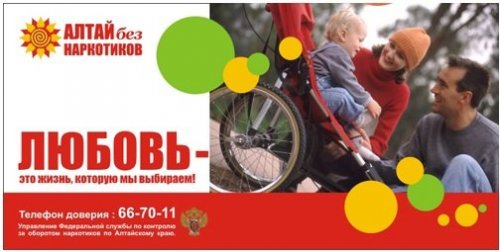 РГ «Город» разработала креатив для социальной кампании «Алтай без наркотиков»На территории Алтайского края стартовал масштабный проект социальной рекламной кампании «Алтай без наркотиков». Кампания была разработана и реализована сотрудниками рекламной группы «Город» совместно с eправлением по Алтайскому краю Федеральной службы РФ по контролю за оборотом наркотиков. Основные лозунги: «Внимание – детям!», «Жизнь, которую мы выбираем», «Так не должно быть». Все рекламные и пропагандистские материалы направлены на развитие чувства ответственности к проблеме наркомании, пропаганду спорта и здорового образа жизни. Средствами в рекламной кампании стали: реклама на телевидении, реклама на радио и наружная реклама. Кроме того, уже планируется производство полиграфической и сувенирной продукции для школьников под лозунгом «Барнаул без наркотиков» и «Алтай без наркотиков» с привлечением в качестве спонсоров алтайских предпринимателей. ![]() Outdoor.Ru |