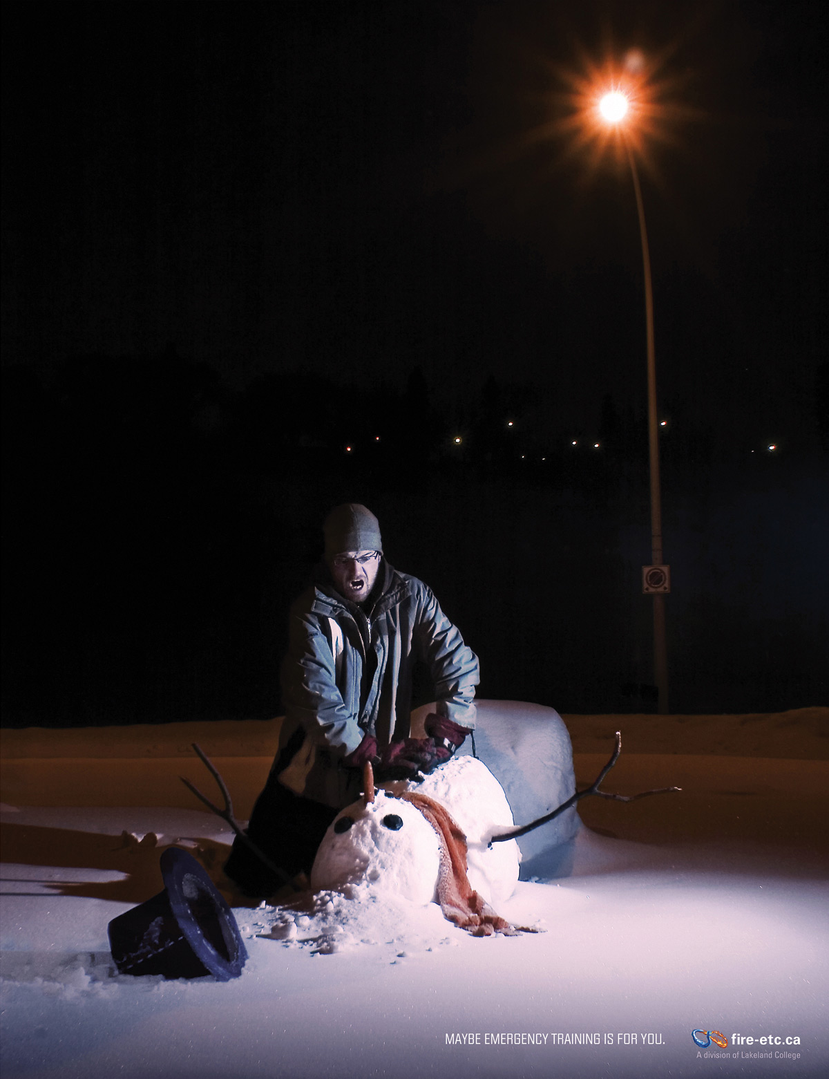 Спасаем вещи вместе с агентством Calder Bateman и школой чрезвычайного обучения Fire-etcНа этих оригинальных принтах от канадского агентства Calder Bateman люди оказывают первую помощь упавшему снеговику и рассыпавшимся продуктам. Эта реклама создана для школы тренировок по чрезвычайным ситуациям Fire-etc. А надпись звучит следующим образом: "Возможно чрезвычайное обучение - для Вас". Агентство: Calder Bateman, Edmonton, Alberta, Canada Творческий директор: Kevin Barclay Арт директор: John Halliday Копирайтер: Krystin Royan |