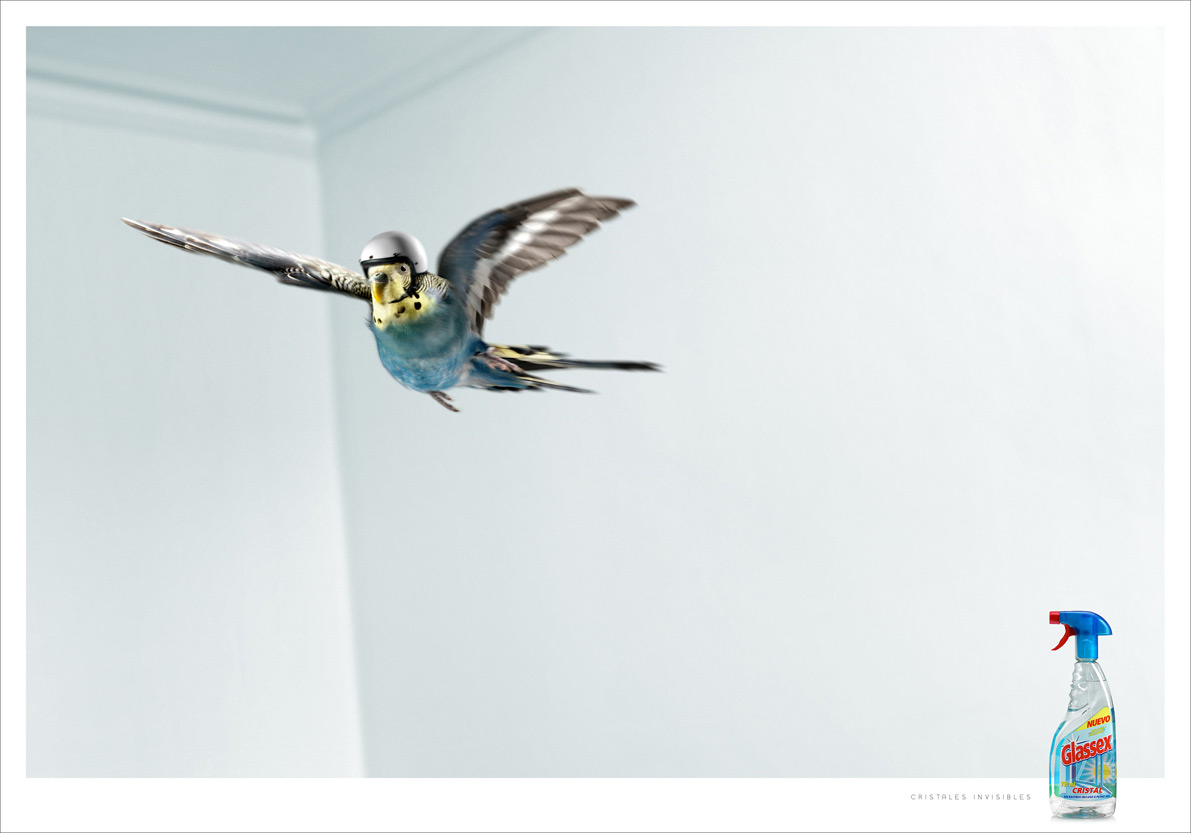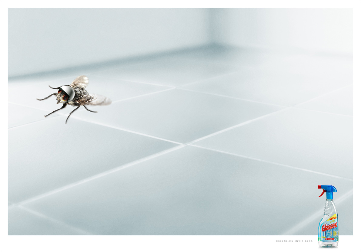 Мухи летают в шлемах. Агентство JWT для Glassex: Осторожно! Невидимые стеклаАгентство JWT представляет нашему вниманию очередную серию принтов, созданную для рекламной компании очистителя стекол Glassex. Суть состоит в том, что это средство очищает стекла настолько хорошо, что их вообще не видно. Поэтому рыбке, мухе и попугаю нужны шлемы на тот случай, если они не заметят и врежутся в стекло. Надпись: "Невидимое стекло" Агентство: JWT, Spain Творческий директор: ?lex Martinez, Jaime Ch?varri Копирайтер: Jaime Ch?varri Арт директор: Napi Rivera Старший менеджер: David Oliva Фотограф: Estudi Garrigosa Менеджеры по рекламе: Lorenzo Delpani, Lorenzo Alegr?a |
