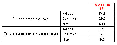 По оценкам экспертов, общие затраты «спортивных» компаний на рекламу составляют в среднем порядка $600-800 тыс. в год. Монобрэндовые магазины Компания Stokmann, получившая, как было сказано выше, право продвигать в России марку Nike, также лишена прав разрабатывать рекламу. «Вся маркетинговая и рекламная стратегия будет создаваться в корпорации Nike, и она пока для нас еще не определена», - пояснила Екатерина Цыбан, менеджер по маркетингу компании Stokmann-Nike. По ее словам, пока можно сказать только о том, что к открытию магазина в центре «МЕГА-Парнас» (8 февраля 2007 года) будут приурочены какие-то рекламные акции, но подробнее о запланированных мероприятиях неизвестно. Некоторое разнообразие Крупными спортивными событиями Петербург не слишком богат – в городе проводятся два турнира, которые можно отнести к международному уровню – по теннису и по пляжному волейболу (организатор обоих мероприятий – компания St.Petersburg Open). Остальные спортивные события, интересующие более или менее широкую аудиторию, - регионального (иногда российского) уровня: футбольные матчи и соревнования по фигурному катанию. Кроме того, для продвижения товаров для горнолыжного спорта существует возможность использовать рекламные площади в районе мест катания – в Коробицыно, Колтушах и т.д. Правда, сказать, что эти пути активно используются для продвижения спортивных брэндов, будет преувеличением. Например, спонсорами теннисного турнира St.Petersburg Open выступали производители алкоголя, продуктов питания, страховой медицины, казино, чайные и автомобильные компании и только один спортивный брэнд – компания Fila (к слову, практически не использующая другие каналы коммуникаций).