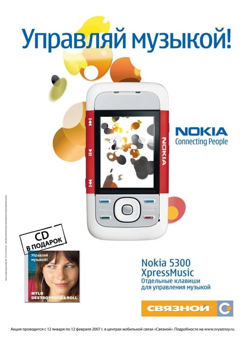 Nokia и Связной проводят масштабную рекламную кампаниюВ период с 12 января по 12 февраля 2007 года компания Nokia и сеть центров мобильной связи "Связной" проведут совместную федеральную рекламную акцию под названием "Управляй музыкой". Каждый покупатель мультимедийных слайдеров Nokia 5300 XpressMusic и Nokia 5200 получит в подарок компакт-диск с альбомом "Destroy Rock&Roll" популярного британского DJ Mylo. Фокусная модель рекламной кампании - телефон Nokia 5300 XpressMusic - будет присутствовать на всех рекламных носителях. Стоимость Nokia 5300 XpressMusic в период проведения акции не превысит 7 777 рублей. Для сети центров мобильной связи "Связной" данная масштабная акция является возможностью привлечь внимание конечного потребителя к уникальному предложению, увеличить продажи сотовых телефонов Nokia. География акции: федеральная розничная сеть "Связной", насчитывающая 1120 центров мобильной связи. В совместной рекламной кампании будут задействованы национальные и региональные телевизионные каналы, сетевые радиостанции, пресса (теле-гиды и сити-гиды), Интернет-ресурсы. Запланировано размещение стикеров в метрополитенах Москвы и Санкт-Петербурга, а также ситиформатов в 20 крупных городах РФ. Рекламные ролики будут транслироваться в кинотеатрах 6 городов. Реклама акции появится в собственных СМИ компании "Связной" (каталог "Взрослые игрушки", сайт www.svyaznoy.ru). POS-материалами будут оформлены все центры мобильной связи "Связной". ![]() |