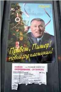 Так, Владимир Жириновский невольно стал гарантом эффективности «полного обследования организма», позволяющего «узнать о себе все». Предприимчивые медики разместили свое рекламное объявление прямо на плакате с изображением лидера ЛДПР, поздравляющего петербуржцев с Новым годом.