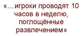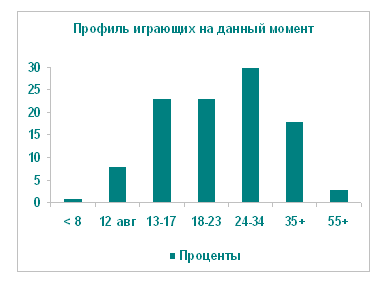 Так кто же всё-таки играет? Забудьте о стереотипе мальчика тинейджера или домоседа. Основную часть игроков составляют люди от 24 до 35 лет и возрастные рамки расширяются. Исследования BBC на рынке Великобритании доказали, что предпочтения игроков женского и мужского полов явно отличаются. Например, женщины за 35 предпочитают игры в слова и паззлы, в то время, как девушки помоложе отдают предпочтение как on-line играм-симуляторам, так и танцевальным и музыкальным играм. Другим важным аспектом является время, потраченное на приобретение игрового опыта. Тот, кто предпочитает смотретьТВ, проводит порядка 2 часов перед экраном. А для того, чтобы дойти до финиша в компьютерной игре, потребуется порядка 40 часов. Игроки чаще всего проводят почти 10 часов в неделю, поглощенные развлечением. Это соизмеримо, а скорее всего превышает, количество времени, которое в среднем проводит человек перед телевизором.