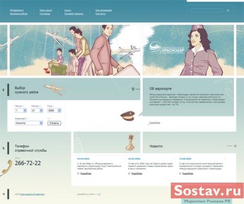 Новый сайт для "воздушных ворот" Краснодарского краяДизайн студия XQ закончила работу над корпоративным сайтом для одного из крупнейших аэропортов юга России - международного аэропорта "Краснодар" Теперь для удобного получения всей самой подробной информации о работе аэропорта в XQ разработали корпоративный сайт. На нем представлен развернутый список всех услуг компании, расписание рейсов, план терминалов аэропорта - словом, все то, что необходимо для того, чтобы подготовиться к перелету. Дизайн сайта выполнен в светлых бело-голубых тонах с использованием тематических рисунков, связанных с авиа тематикой. Каждая страница отличается характерной иллюстрацией, связанной по смыслу с представленной на ней информацией. ![]() ![]() ![]() ![]() ![]() ![]() |