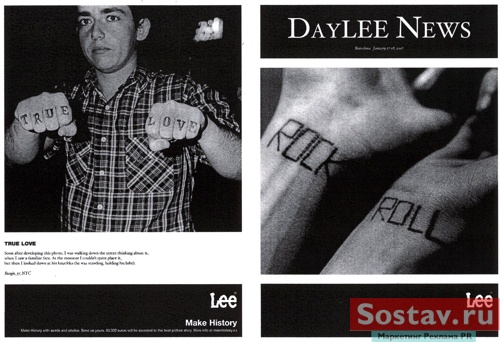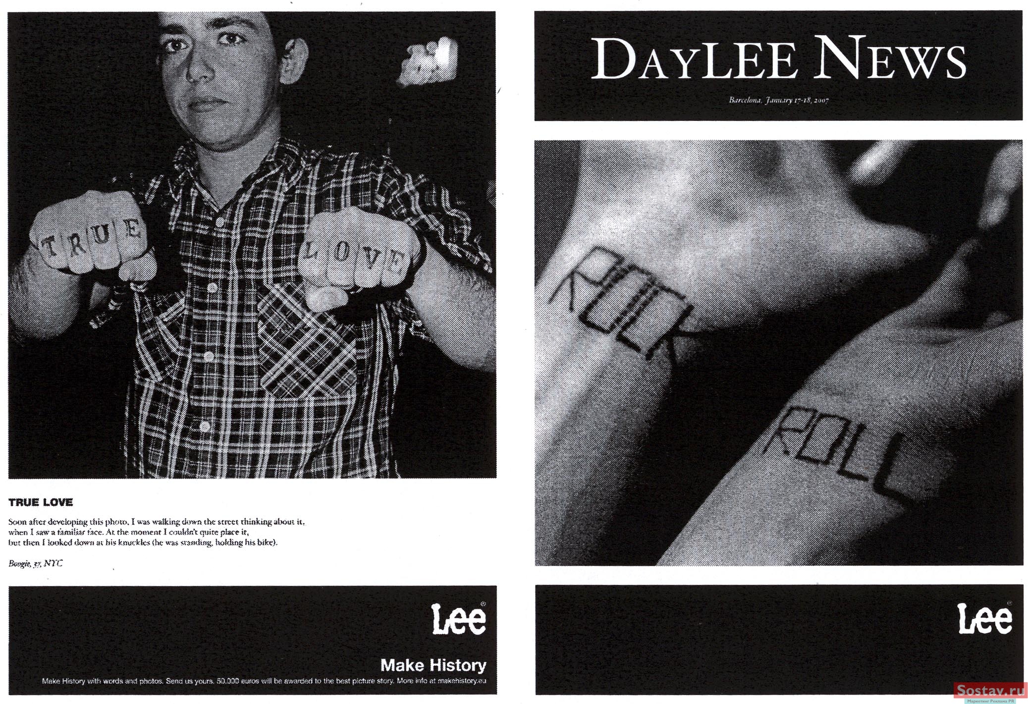 Новая рекламная кампания Lee "Make History"17-18 января в Барселоне прошла Международная выставка брендовой одежды, обуви, спорттоваров BREAD & BUTTER - крупнейшая европейская выставка модной одежды - зеркало современной культуры. Представители компании Lee презентовали вам коллекцию "Осень-зима 2007/2008". Будущая коллекция была представлена в отдельном от выставки шоуруме, привлекавшем внимание своей неординарностью и оформлением. Благодаря мастерству и фантазии художника MODE2 овощной магазинчик, являющийся площадкой для шоурума, преобразился и слился с неожиданно появившемся магазином джинсовый одежды. Новая рекламная кампания Lee "Make History" объединяет под брендом Lee творческих личностей, обладающих влиянием на окружающих через свои оригинальные работы. Одним из таких является профессиональный фотограф Буги (Boogie), создавший имиджи новой коллекции. Рекламная кампания Lee "Make History" использует реальные жизненные ситуации, рассказанные реальными людьми, а также яркие визуальные образы, представляющие мир, в котором мы живем. Самые оригинальные из них выходят за пределы времени. Они Делают Историю. |
