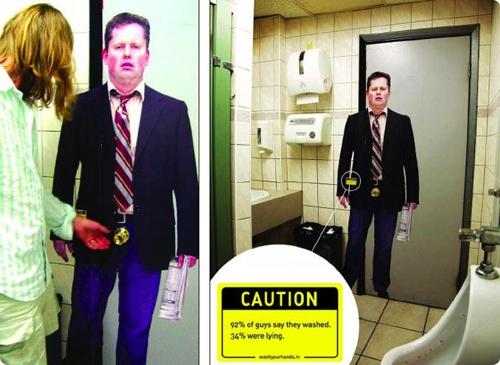 Мойте руки. Шон Галлахер и Стив Тёрнбул придумали рекламу америкнаской кампании за мытьё рукШон Галлахер (Sean Gallagher) и Стив Тёрнбул (Steve Turnbull) bp JWT Toronto придумали рекламу америкнаской кампании за мытьё рук. Сайт Washyourhands.tv, рекламируемый сейчас во множестве общественных туалетов Америки не расскажет вам ничего нового. Он просто будет услужливо приводить ситуации в которых люди не помыли руки, хотя им следовало это сделать, пример за примером. Довольно скучно. Гораздо забавнее реклама интернет-ресурса. Выглядит она вот так: Эдакие милые мужчины, нарисованные на дверях туалетов имеют прикреплённые на разных частях тела стиеры с надписями вроде: «Ты помыл руки. А этот парень — нет» или «92% людей утверждают, что мыли руки. 34% из них лгут». Рекламное решение привлекает внимание и как может избегает занудства.![]() KAK.RU |