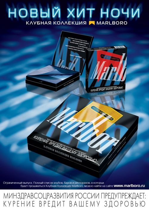 Сигареты для клубной жизни. "Филип Моррис Сэйлз энд Маркетинг" выпустил имиджевую упаковку для "MARLBORO"Компания "Филип Моррис Сэйлз энд Маркетинг" представила на российском рынке сигареты "Marlboro" под названием "Клубная коллекция "Marlboro": "Full Flavor", "Lights" и "Ultra Lights". Упаковка имиджевых сигарет имеет форму портсигара и была специально разработана для курильщиков, посещающих лучшие клубы, бары и рестораны Москвы и Санкт-Петербурга. По словам Фредрика Шталя, директора по рекламе компании "Филип Моррис Сэйлз энд Маркетинг", специальный выпуск призван подчеркнуть современность и динамизм бренда в новой и стильной манере, которая полностью соответствует клубной культуре. Новая разновидность "Marlboro" гармонирует с яркой атмосферой ночного клуба благодаря авангардным цветовым и геометрическим решениям дизайна пачки. Как стало известно Sostav.ru, в прошлом году подобная коллекция уже выходила в Италии, Венгрии, Греции, Польше, а так же распространялись магазинах Duty Free крупнейших аэропортов стран Евросоюза. В России клубные сигареты появятся 1 февраля 2007 года ограниченным тиражом, как сказала Sostav.ru Ирина Бахтина, управляющий по связям со СМИ "Филип Моррис Сэйлз энд Маркетинг", имиджевый табак будет распространяться только в избранных магазинах и супермаркетах с уже наработанным именем, например, в сети магазинов "Азбука вкуса". Максимальная розничная цена сигарет специальной серии не будет отличаться от цены основного семейства сигарет "Marlboro" и составит 30 рублей. |