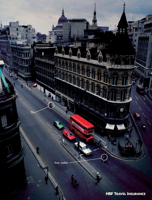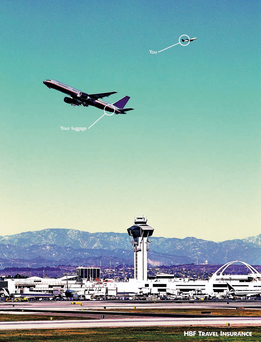 Реклама HBF Travel Insurance от агентства GatecrasherАвстралийское агентство Gatecrasher разработало эти рекламные принты для страховой компании HBF Travel Insurance. Основная идея всех плакатов состоит в том, что эта компания страхует вас от тех проблем, которые могут возникнуть во время путешествия, например, кража кошелька на улице, потеря камеры на американских горках или когда ваш багаж перепутали и отправили другим рейсом. Агентство: Gatecrasher, Australia Арт директор: Brett Colliver Копирайтер: Joe Hawkins |
