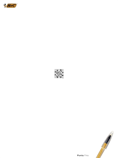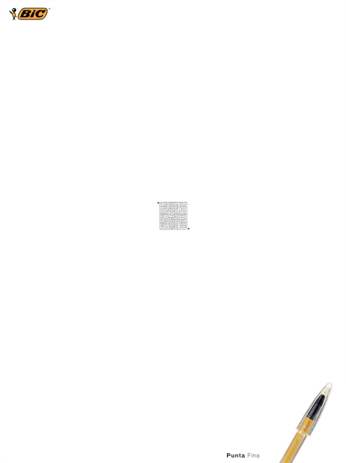 Тонкая реклама ручки Bic от агентства TBWA\FrederickЧилийский филиал агентства TBWA\Frederick не стандартно подошел к рекламе ручки Bic. Основное преимущество это ручки заключается в ее тонкости. А агентство считает, что Bic настолько тонкая и точная, что с помощью нее можно заполнять такие маленькие кроссворды и проходить миниатюрные лабиринты. Надпись: "Тонкая ручка" Агентство: TBWA\Frederick, Chile Творческий директор: Pedro Muhr Арт директор: Paulino Caffarena Копирайтер: Pedro Muhr Фотограф: TBWA Stock |