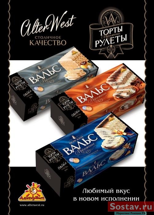 Компания "АльтерВЕСТ" провела ребрендинг упаковки рулетов. Теперь все позиции ("Венский вальс", "Золотой вальс", "Серебряный вальс", "Косичка по-итальянски", "Косичка по-ирландски") будут выпускаться в едином стиле. Создавая новую упаковку, дизайнеры стремились отразить романтическое настроение и изысканность вкуса мороженого. Мероприятия по редизайну упаковки направлено на увеличение доли рынка в сегменте семейного мороженого за счет формирования лояльности к компании и ее брендам.