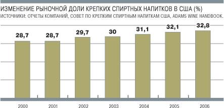 Водконаливательские настроения. Быстрее всего на американском рынке растут продажи водкиВ конце января в США были опубликованы данные динамики рынка алкогольной продукции. Выяснилось, что быстрее всего на американском рынке растут продажи водки, причем каждый год в США появляется все больше новых водочных брэндов. Подобная тенденция наблюдается и в Европе. Эксперты объясняют это структурными изменениями в потребительских предпочтениях, которые, в свою очередь, вызваны целым рядом глубинных факторов, включая такой, как смена поколений."Поколение X" выбирает водку В последнее время продажи крепких спиртных напитков и, в частности, водки в США демонстрируют устойчивый рост. По данным совета крепких спиртных напитков США, продажи этой продукции в 2006 году выросли на 6,3%, достигнув объема $17 млрд это максимальный рост продаж за последние два года. Рост произошел благодаря увеличению спроса на водку класса суперпремиум и виски. Брэнды крепких спиртных напитков сегмента суперпремиум водки Grey Goose и текилы Patron увеличились на 17,5%. Эксперты отмечают, что все большей популярностью пользуется шведская Absolut. Общие продажи водки в США достигли $4 млрд. В сегменте виски лидируют марки Jack Daniels компании Brown-Forman Corp и Jim Beam компании Fortune Brands рост продаж составил 4,6%. Причем рыночная доля крепких спиртных напитков растет уже пятый год подряд. Если в 2001 году она составляла 28,7%, то в 2006 году уже 32,8%. Только за 2006 год рыночная доля крепких спиртных напитков выросла на 1,7%. Растущая популярность водки в США приводит к появлению на рынке новых водочных брэндов ведь производители не хотят упускать момент. По данным Adams Beverage Group, с 2001 по 2006 год в США появилось 260 новых брэндов водки. В то же время продажи пива самого популярного в США напитка в последнее время падают. Максимум рыночной доли пива в США был зафиксирован в 1995 году 59,5%, уже в 2000 году она упала до 55,5%, а в прошлом году до 50,7%. Потребление водки в чистом виде несвойственно для США рост продаж этого напитка обусловлен увеличивающейся популярностью коктейлей, в состав которых входит водка. По словам главы совета крепких спиртных напитков Питера Кресси, "растет популярность коктейльной культуры". Кроме того, постепенно стареет поколение послевоенных детей, так называемое поколение беби-бумеров (см. справку). Это поколение традиционно предпочитало пиво, однако теперь выбирает более респектабельные напитки вроде вина или коктейлей на основе спиртных напитков. Росту потребления водки в составе коктейлей способствуют предпочтения "поколения X", уже вошедшего в активный потребительский возраст. Это поколение, воспитанное на потреблении сладких газированных напитков типа колы, по мере взросления переходит на более крепкие, но не менее сладкие напитки, то есть коктейли. Популярностью пользуются как традиционные коктейли типа "отвертки", так и экзотические с использованием маракуйи, кумквата или лаванды. Еще одной причиной роста продаж спиртных напитков является то, что с 1996 года американские потребители спиртных напитков начали рекламировать свою продукцию на ТВ и радио, сняв многолетнее ограничение, добровольно наложенное самими компаниями в 1930-1940 годах. С 2001 года реклама стала транслироваться по всей территории США сейчас рекламу спиртных напитков показывают более двух десятков кабельных сетей и около