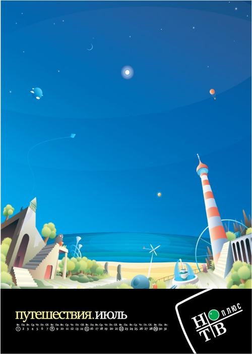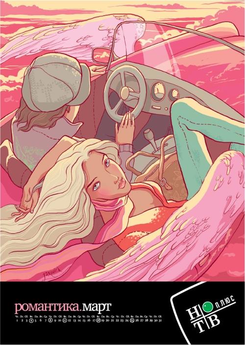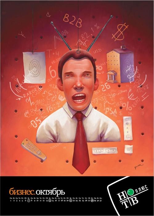 Cтудия Coalla Revolving, организованная Валерием Гольниковым придумала и организовала проект по созданию иллюстраций для корпоративного календаря НТВ+. В проекте использованы авторские работы 12 художников-иллюстраторов. Идея календаря изобразить в картинках большинство направлений в телеэфире, которое охватывают каналы, транслируемые посредствам услуг компании НТВ+.