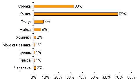 Домашнее животное есть у каждого второго горожанинаИсследовательским холдингом ROMIR Monitoring в декабре 2006 года было проведено исследование, посвященное стилю жизни россиян. В опросе приняло участие более 10 тысяч жителей крупных российских городов старше 15 лет. Статистическая погрешность исследования не превышает ±1%. Одной из тем исследования стала тема домашних животных. В ходе опроса выяснилось, что практически каждый второй горожанин держит дома животных. Причем, чем больше в семье человек, тем больше вероятность того, что любимцы в этой семье есть. Так, животные есть у 28% людей, живущих в одиночестве и в каждой второй семье из 5 и более человек. ![]() Наличие детей в незначительной степени влияют на присутствие животных в семье. Жить с домашними любимцами предпочитает каждый второй респондент, имеющий детей до 18 лет, и каждый третий респондент, не имеющий детей. Размер семейного бюджета на наличие питомца практически не влияет. Согласно результатам опроса решают завести любимца 44% респондентов, имеющих доход на одного члена семьи 3 и менее тыс. рублей в месяц, и около 50% людей с доходом более 15 тыс. рублей на человека в месяц. В ходе исследования респондентам был задан вопрос: Какие животные есть в Вашей семье? Ответы на него распределились следующим образом: ![]() Судя по результатам опроса, две третьих россиян имеют кошек (69%), у трети горожан есть собаки (33%), заметно реже держат в доме птиц (8%), рыбок (6%), а черепах имеют лишь 2% опрошенных; кролик, либо морская свинка, либо крыса живут лишь у 1% горожан. Интересно, что, чем больше семья, тем чаще в доме заводят собаку. К примеру, среди семей, состоящих из трех человек, 32% живут с собакой, а среди семей из пяти человек – 38% респондентов. В тоже время, чем меньше семья, тем чаще в домохозяйстве живут кошки. Так у 79% одиноких людей живет кошка в доме, а среди семей из пяти и более человек кошек заводят реже (66%). По результатам опроса 88% из числа имеющих собак заводят в доме по одной собаке, 10% опрошенных живут с двумя собаками, и лишь 2% россиян заводят трех собак. Примерно такая же ситуация среди горожан, имеющих кошек (85%, 11% и 2%, соответственно). www.rmh.ru |