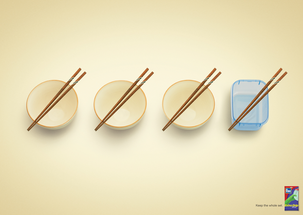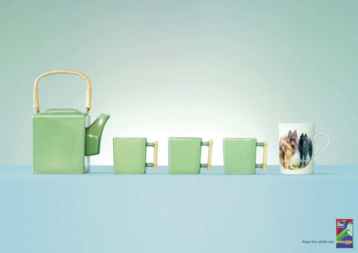 Нескользкие перчатки Chux Extra Grip Gloves представило агентство DDB SydneyЭта рекламная кампания резиновых перчаток для мытья посуды Chux Extra Grip Gloves от агентства DDB Sydney показывает основное преимущество этого продукта. Ваш набор посуды останется целым, так как вы не разобьете его при мытье из-за скользких перчаток. Ведь эти перчатки имеют особую поверхность, которая не скользит при намокании. Надпись: "Сохраните целый набор" Агентство: DDB Sydney, Сидней, Австралия Творческий директор: Matt Eastwood Арт директор: Tim Green Копирайтер: Tim Cairns Фотограф: George Scott Ретушер: CREAM |