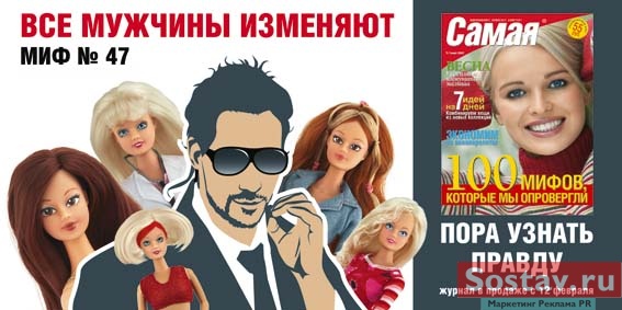 "Самая" увлеклась мифологией. Рекламная кампания мартовского номераМартовский номер журнала "Самая" опровергает 100 самых распространенных мифов о женщинах и мужчинах, моде и красоте, психологии и сексе, диетах и здоровье, детях и животных. Выход номера поддерживается рекламной кампанией на телеканале ТНТ (федеральное размещение), на биллбордах в Москве, Ростове-на-Дону, Челябинске, Екатеринбурге, Воронеже, Владивостоке и Казани, рекламой в метро в Москве и Санкт-Петербурге и в прессе. Мартовский номер журнала "Самая" в продаже с 12 февраля. ![]() ![]() |