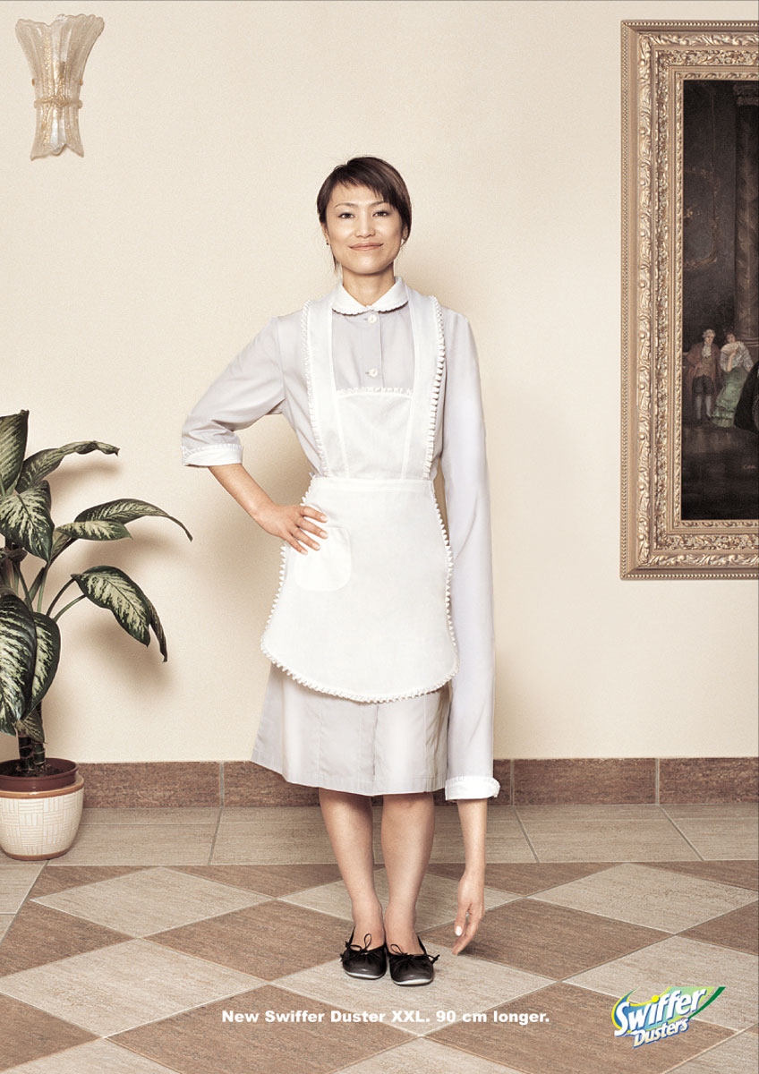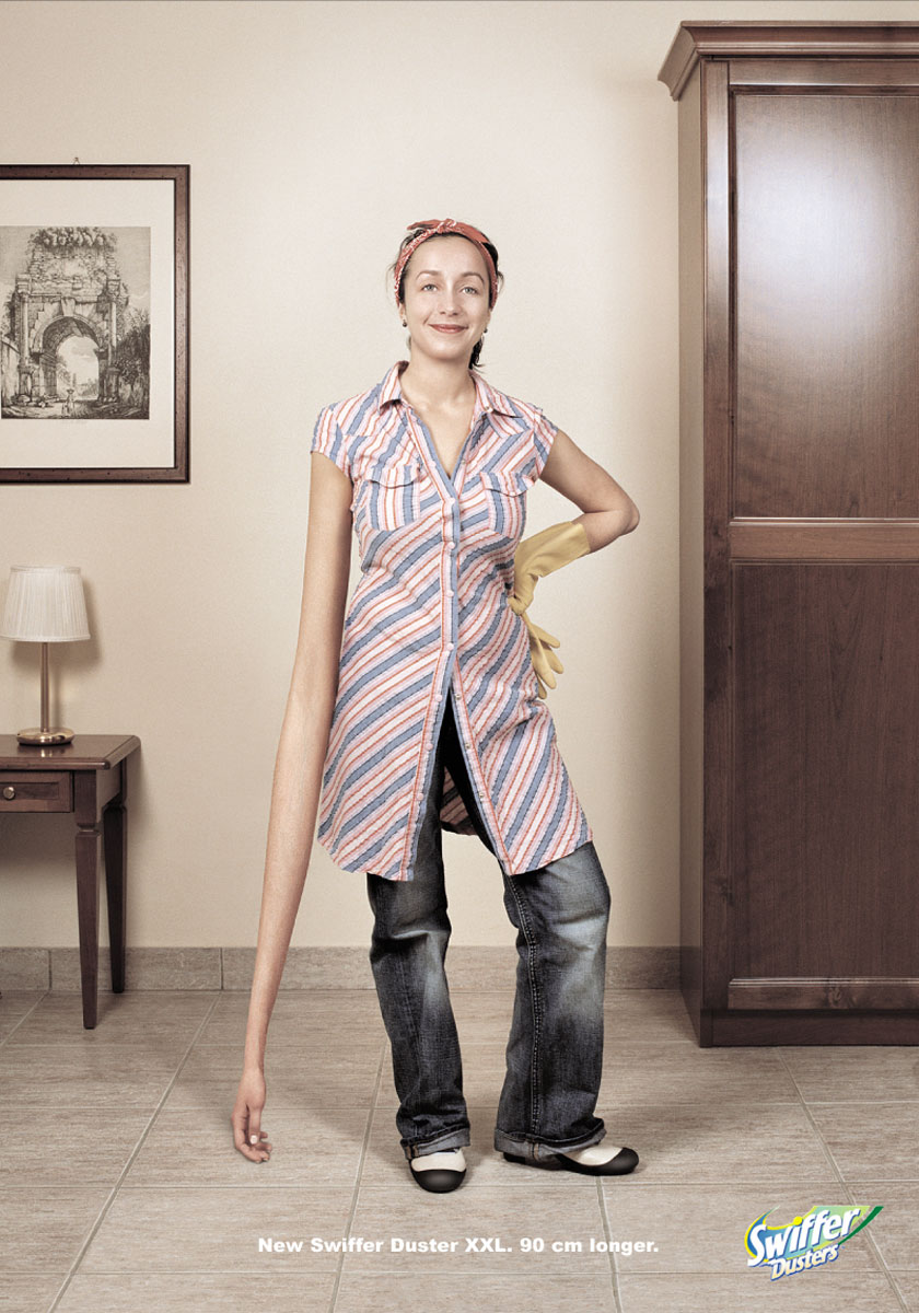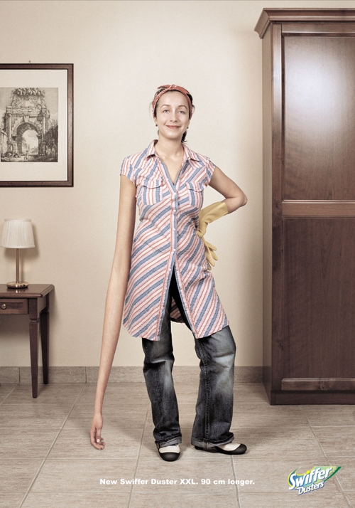 Длиннорукие горничные от агентства Leo Burnett в рекламе для Procter & GambleИтальянский филиал агентства Leo Burnett показывает нам горничных, которым всю жизнь приходилось тянуться к труднодоступным местам, где скапливалась пыль. Видимо, из-за этого у них и выросли такие длинные руки. Теперь им не нужно напрягаться, ведь сейчас у них есть новый супер длинный сборщик пыли Swiffer Duster от Procter & Gamble. Новый Swiffer Duster XXL. На 90 см длиннее. Агентство: Leo Burnett, Рим, Италия Арт директор: Silvia Santarelli Копирайтер: Errico Sessa Фотограф: Winkler & Noah (www.winkler-noah.it) |
