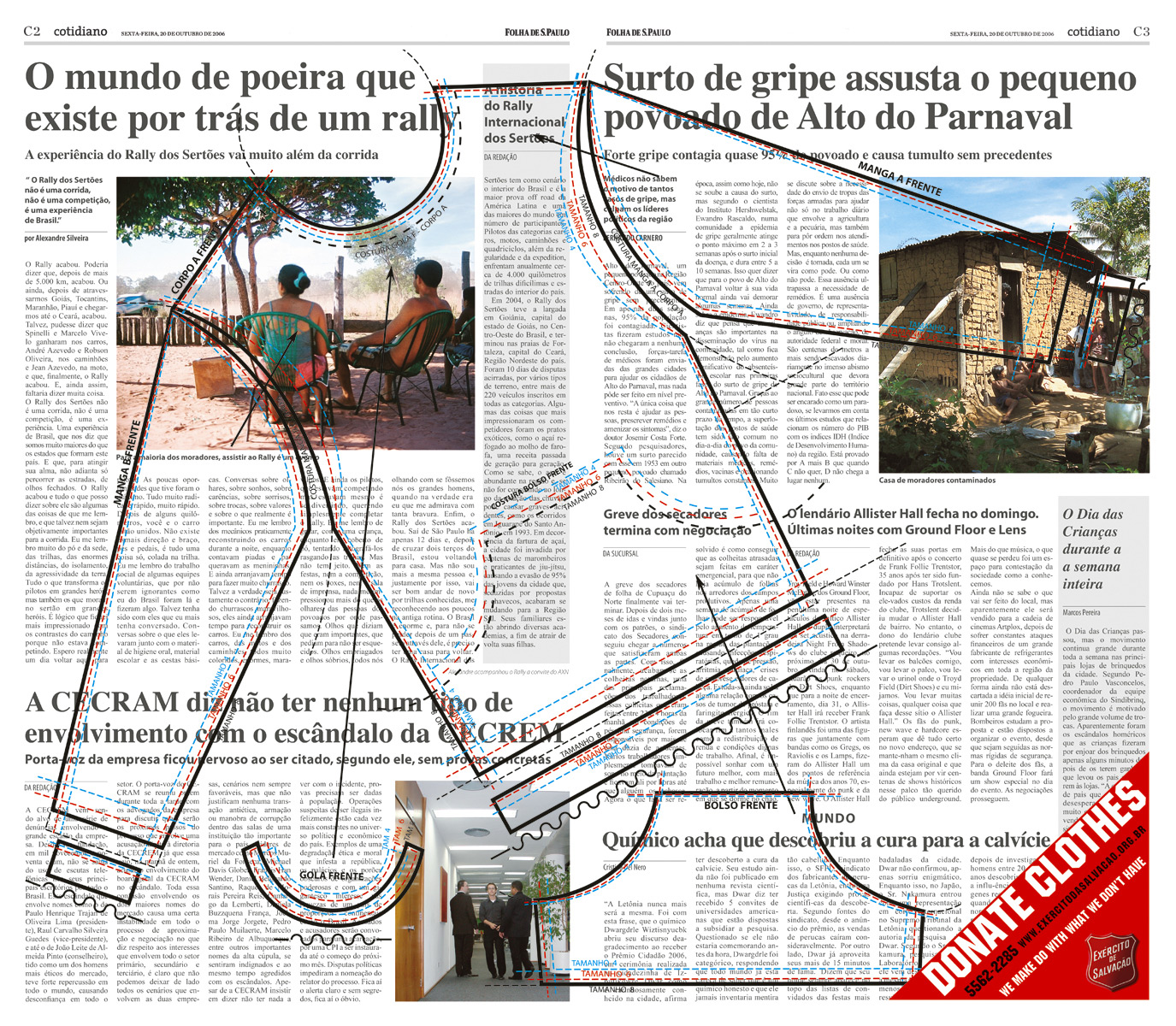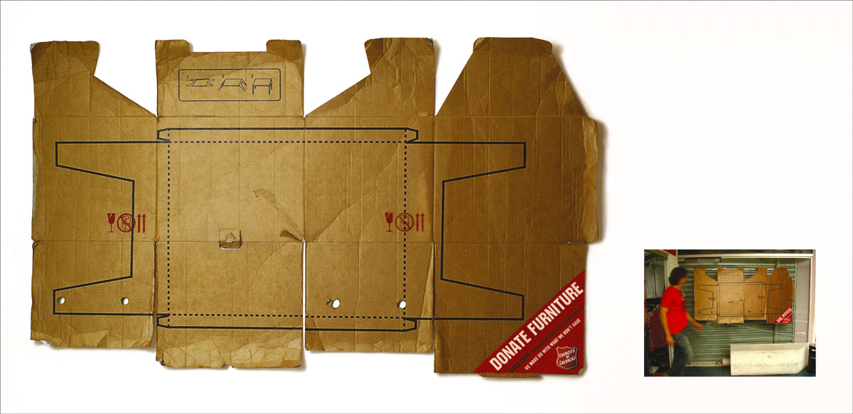 Одежда из газеты от агентства McCann для Армии СпасенияАгентство McCann создало рекламную кампанию для организации Salvation Army (Армия Спасения). На кусках газеты, полиэтилена и коробках изображены чертежи одежды и мебели. Таким образом, эта кампания показывает нам, что некоторые люди вынуждены обходится тем, что они имеют, и призывает вас жертвовать одежду и мебель. Надпись: "Пожертвуйте мебель - мы умеем обойтись тем, что мы не имеем." Агентство: McCann, Сан-Пауло, Бразилия Творческий директор: Adriana Cury, Eduardo Hernandez Арт директор: Alexandre Silveira, Fernado Reis Копирайтер: Marcos Teixeira, Marcelo "Padoca" Lima |