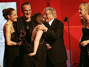 Церемония "Грэмми" вернула себе любовь телезрителейТрансляция церемонии вручения премий "Грэмми" Американской академии звукозаписи, показанная вечером в воскресенье 11 февраля 2007 года, привлекла свыше 21 миллиона американских телезрителей, что на 18 процентов больше результата 2006 года. Об этом сообщает Associated Press со ссылкой на исследовательскую компанию Nielsen Media Research. В 2006 году оргкомитет премии передвинул церемонию с традиционного воскресенья на среду, и аудитория трансляции оказалась самой низкой за всю историю "Грэмми" - только 17 миллионов зрителей. В 2005 году показ сериала "Отчаянные домохозяйки" тоже повлиял на объем аудитории: многие зрители предпочли новый эпизод музыкальному шоу. Из всех музыкальных телепередач, собирающих большую аудиторию, рекордсменом считается финал шоу "American Idol". В мае 2007 года его организаторы ожидают 35 миллионов зрителей. Премию "Грэмми" как лучшая новая артистка в 2007 году получила певица Кэрри Андервуд (Carrie Underwood), победительница "American Idol" 2005 года.![]() Квентин Тарантино и Тони Беннет поздравляют трио Dixie Chicks на церемонии Grammy. Фото AFP LENTA.RU |