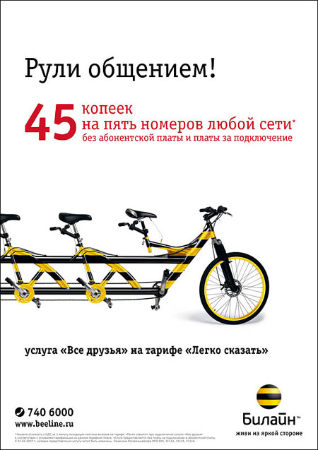 Brand&Video подарил «Билайну» велосипедКомпания «Вымплеком» (ТМ «Билайн») проводит рекламную кампанию в поддержку новой услуги «Все друзья». Новый креатив разработан петербургским агентством Brand&Video. Как пояснили AdLife.spb.ru в компании «Вымпелком», рекламная кампания предназначена, прежде всего, для абонентов, пользующихся услугой «Любимые номера», задача РК – продвижение новой, пока еще уникальной на российском рынке услуги сотового оператора. «В Brand&Video нам предложили яркую, «говорящую» идею: визуальный образ – велосипед – наглядно демонстрирует преимущества новой услуги, - рассказывают в компании «Вымпелком». - Это наш первый опыт сотрудничества с этим агентством, и мы очень довольны результатом».![]() ![]() adlife.spb.ru |
