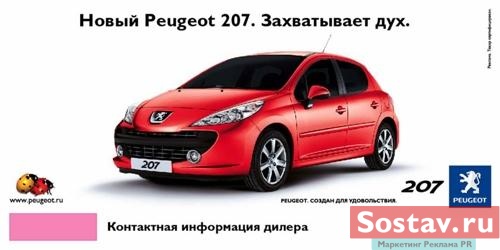 Любовные игры божьих коровок. Peugeot запустил рекламную кампанию хэтчбека 207 в РоссииКомпания Peugeot вместе с рекламным агентством EuroRSCG Moscow начали масштабную рекламную кампанию нового хэтчбека в России. В Европе реклама "горячего" автомобиля началась в конце лета прошлого года, теперь она дошла и до нас. Кульминационная часть всей кампании приходится на ролик, где божьи коровки предаются любовным забавам в салоне новенького авто. Причем в порыве безудержной страсти насекомые раскачиваются автомобиль так, что мимо проходящие люди приходят в замешательство. Букашкину сексуальную страсть воплощал в жизнь знаменитый режиссер Тьерри Пуаро. Слоган рекламной кампании: "Новый Peugeot 207 - Захватывает дух. Peugeot создан для удовольствия".