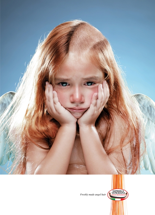 Ресторан Gondola Veneziana вместе с агентством Ogilvy & Mather China потчует гостей волосамиАгентство Ogilvy & Mather придумало необычный способ для рекламы итальянского ресторана Gondola Veneziana. Нам сообщается, что в этом ресторане подают ангельские волосы. По-видимому, создатели хотели сыграть на схожести светлых волос и макарон, ну а волосы ангелов по определению должны быть идеальны. Надпись: "Свежеприготовленные ангельские волосы. Gondola Veneziana Итальянский ресторан." Агентство: Ogilvy & Mather, Шанхай, Китай Творческий директор: Ng fan, Kenny Choo Арт директор: Ng fan, Liang zhen, Larry Lin, Yang Guojing, Pasu Shen Копирайтер: Ng Fan, Andrew Lok, Shine Liu Фотограф: Connie Hong