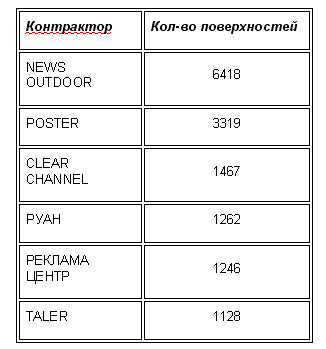 Петербургская "наружка" в цифрахПо данным компании «ЭСПАР-Аналитик», в 2006 году объем индустрии наружной рекламы Петербурга составил $145 млн., включая рекламу в метро и на транспорте. Прирост составил всего 16%, доля Петербурга в обороте российской наружной рекламы осталась на прежнем уровне - 14%. По данным «Городского центра размещения рекламы», сумма поступлений в городской бюджет от наружной рекламы в 2006 г. увеличилась на 3,2%, так что городская казна пополнилась на 812,3 млн. рублей. Столь небольшой прирост, по словам Андрея Лапина, замдиректора ГЦРР, объясняется новыми правилами на размещение рекламы и взимание платы за нее на объектах, контролируемых ТСЖ. По его словам, 77% поступлений в городской бюджет происходили от сетевых рекламных конструкций и 23% - от рекламных конструкций индивидуальных проектов (например, размещенных на фасадах зданий). На 1 января 2007 года, по данным ГЦРР, в Петербурге насчитывается 11 841 сетевая конструкция. По типам рекламоносителей они разделяются на: сити-формат – 3 327, пилларсы, тумбы – 768, щиты 3Х6 – 3 997, крупноформатные конструкции – 672. Что касается индивидуальных проектов, то, по данным ГЦРР, в городе насчитывается 6 540 рекламоносителей. «В этом году их количество сократится в 2-3 раза», - прокомментировал Андрей Лапин. По его словам, доли рынка среди операторов наружной рекламы распределяются следующим образом: News Outdoor – 27%, ХПО – 19%, «Постер» - 12%, «Руан» и «Реклама-Центр» - по 5%, «Волгобалт Медиа» и Clear Channel – по 4%, «Талер» и BV Media – по 3%. По данным «ЭСПАР-Аналитик», количество рекламных поверхностей, принадлежащих сапплаерам в Петербурге, выглядит следующим образом: (состояние на декабрь 2006 года):![]() adlife.spb.ru |