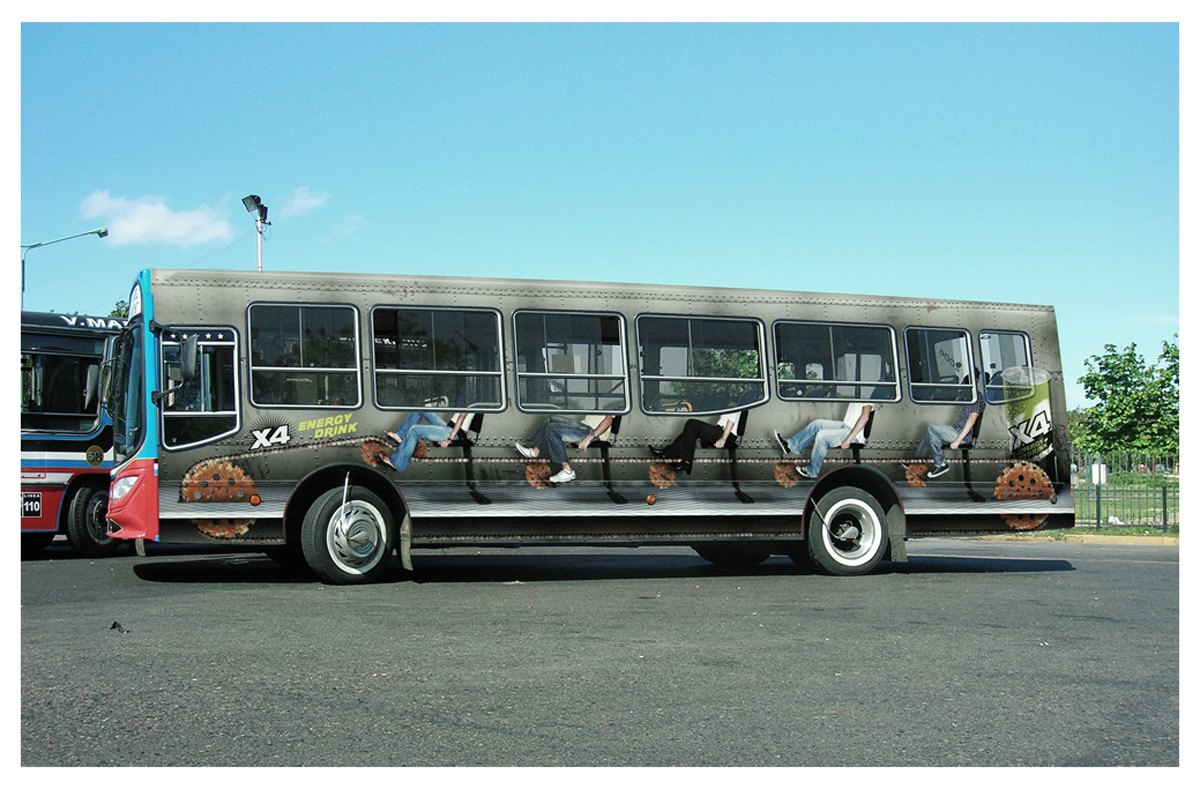 Энергичный автобус агентства La Age Marketing Arts для рекламы напитка X4Вот такие забавные автобусы разъезжают по улицам Аргентины. Эта идея возникла у агентства La Age Marketing Arts, а рекламировать она призвана энергетический напиток X4 Energy Drink. Со стороны кажется, что люди, сидящие в автобусе, усиленно крутят педали и таким образом двигают его. Агентство: La Age Marketing Arts, Буэнос-Айрес, Аргентина Творческий директор: Alejandro Stea, Javier Lafont Арт директор: Alejandro Stea Копирайтер: Javier Lafont |