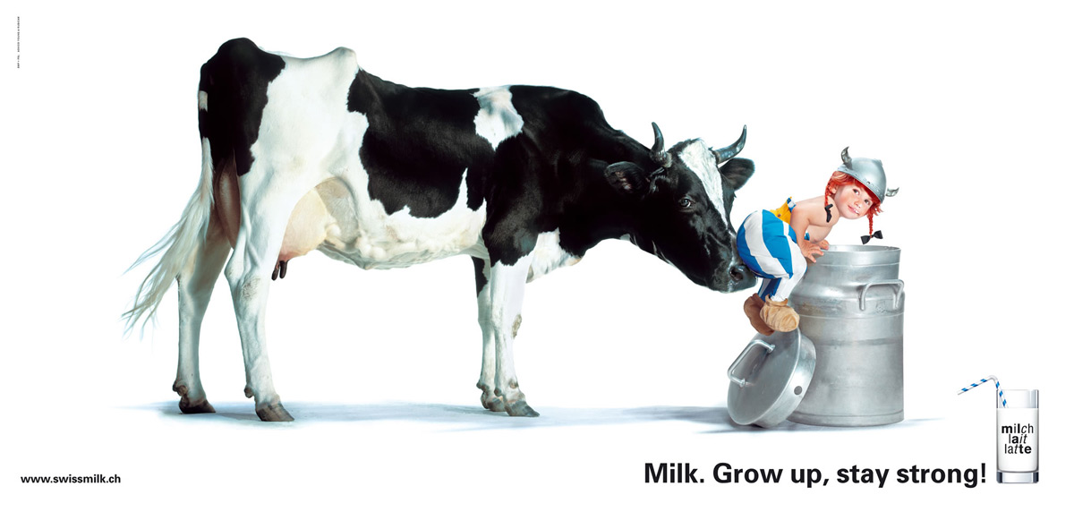 Швейцарское агентство Advico Young & Rubicam на этом рекламном принте открывает нам тайну, почему Обеликс, друг Остерикса, вырос таким большим. За это нужно благодарить молоко SMP Swiss Milk.