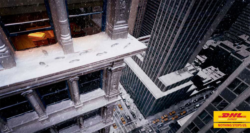 На пути DHL нет преградВы видите перед собой серию рекламных принтов всемирно известного сервиса доставки DHL. Основная идея состоит в том, что на пути этой службы не может быть преград, а если таковые и встречаются, то DHL находит обходные пути. Например, чтобы доставить посылку, работники DHL спускаются под землю, ходят по карнизам и т.д. Надпись: "DHL express. Нас ничто не остановит." |