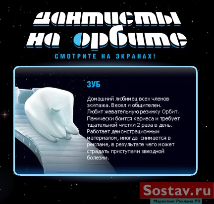 Когда во Вселенной не останется кариеса, BBDO Moscow вернет их на ЗемлюРекламное агентство BBDO Moscow и компания Wrigley, как уже сообщал Sostav.ru, завершили съемки рекламных роликов в рамках новой коммуникационной кампании Orbit. Жевательная резинка будет продвигаться фантастическими персонажами в стилистике "Звездных войн". По замыслу, дантисты-космонавты спасают Вселенную от кариеса. Трейлер к рекламному сериалу под музыку группы "Европа" рассказывает о двух врачах стоматологах - Джуниоре и Доке, их очаровательной спутнице - медсестре-роботе Синтии, а также об общем любимце Зубе, играющем роль домашнего животного. Они бороздят космические просторы, избавляя самых разных инопланетян от кариеса. Только после завершения своей миссии их ждет возвращение на Землю. Для работы над проектом агентство BBDO Moscow пригласило известную голливудскую пару: режиссера Фрэнка Корачи и художника - постановщика Пэрри Блэйка, известных по своим работам "Клик: с пультом по жизни" с Адамом Сэндлером и Кристофером Уокеном в главных ролях, "Вокруг света за 80 дней" с Джеки Чаном и Стивом Куганом. Компания Orbit первая рекламная работа и первый визит в Россию голливудских режиссеров. Во время съемок Фрэнк и Пэрри признались, что, их так вдохновила работа над Orbit, что они даже подумывают снять новый фильм по мотивам рекламы. Перри Блэйк также известен как художник-постановщик рекламных роликов для таких всемирно известных корпораций как Coca Cola, Reebok, Nike и Nissan. Для продвижения компании был открыт промо-сайт naorbite.ru, сделанный в духе популярных "Звездных войн". На сайте можно познакомиться с каждым из персонажей сериала, а также скачать обои на рабочий стол и посмотреть видео. Александр Кленин, Sostav.ru