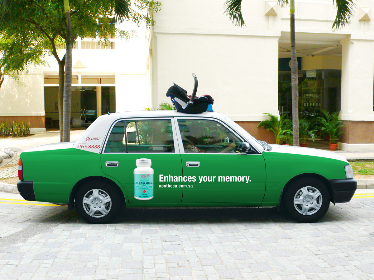 Рекламный автомобиль от агентства Crush Advertising для препарата MemorinЭта машина, разъезжающая по улицам Сингапура, призвана рекламировать лекарство Memorin, улучшающее память. Агентство Crush Advertising разместило на крыше этого автомобиля детское кресло. Так что создается впечатление, что водитель забыл ребенка на крыше. Надпись: "Улучшает вашу память. apotheca.com.sg" Агентство: Crush Advertising, Сингапур Творческий директор: Kelvin Pereira Арт директор: Luke Tay Копирайтер: Omar Marks, Annette Lee |