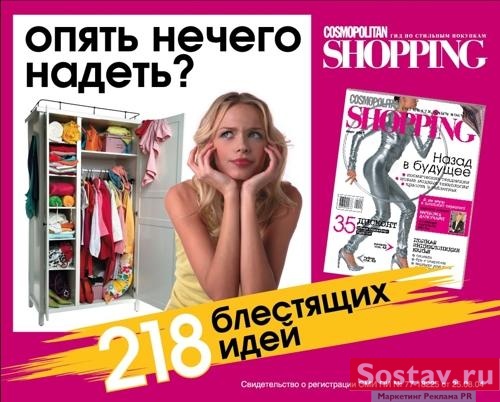 26 февраля стартовала рекламная кампания мартовского номера журнала Сosmopolitan Shopping"Опять нечего надеть? Купи журнал!" - таков слоган рекламной кампании журнала Cosmopolitan Shopping в марте. С конца февраля сити-форматы с мартовской обложкой появились на центральных улицах Москвы, а с 1 марта на Тверской будут вывешены два больших баннера. Радиоанонсы прозвучат в эфире Love Radio в Москве и Санкт-Петербурге. ![]() |