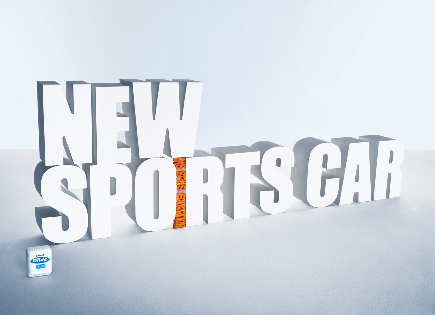 Зубная нить Crest Glide избавит от жизненных проблемПеред вами реклама зубной нити Crest Glide. Эта нить поможет вам удалить остатки пищи между зубов, которые мешают вам жить, так же как огромная рента мешает жить на Манхеттене или мусоровоз мешает спать по утрам. Надпись: "Большая вечеринка - собрание в 9 часов утра" "Манхеттен - рента" "Новая спортивная машина - образование моего сына" "Сон - мусоровоз" Агентство: неизвестно |
