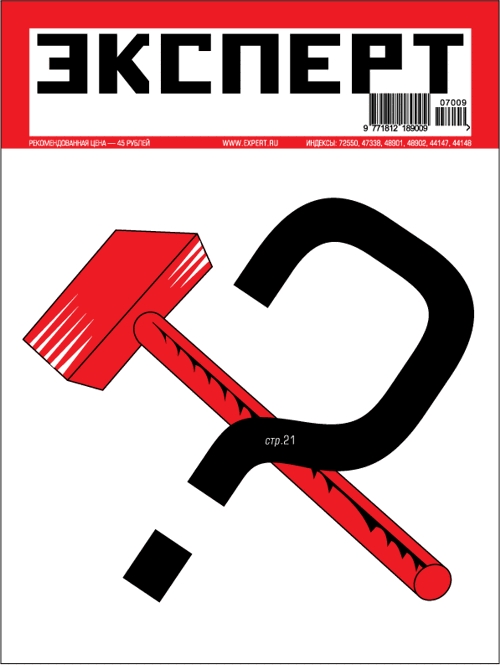 Обложка «Эксперта»Кирилл Рубцов нарисовал для журнала «Эксперт» обложку, которую по какой-то причине не приняли. Тема была - "есть ли спрос на социализм", про партию Миронова. Поскольку она совершенно замечательная, арт-директор журнала, Сергей Жегло, решил прислать её в редакцию, дабы она не осталась в безвестности. Нужно сказать, что журнал «Эксперт» вообще всегда радует своими обложками. Выяснилось, что это неспроста, ибо руководители в этом важно вопросе иногда советуются с Сергеем Серовым и даже Михаилом Аникстом.![]() KAK.RU |