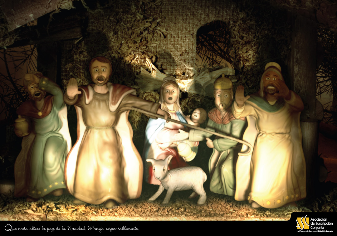 Рождественская тема от агентства Key. The idea bank. для Compulsory Auto Insurance of Puerto RicoПуэрто-рикансокое агентство Key. The idea bank. разработало этот рекламный плакат для страховой компании Compulsory Auto Insurance of Puerto Rico в преддверии Рождества. Нам предлагают представить, чтобы было, если бы на главных героев этого праздника наехал автомобиль. Надпись: "Не позволь безответственному вождению разрушить Рождество." Агентство: Key. The idea bank. Сан-Хуан, Пуэрто-Рико Творческий директор: Jos? Mu?oz Арт директор: Germ?n Vazquez Копирайтер: Mat?as Blazevic Иллюстратор: Juan Carlos Montes |