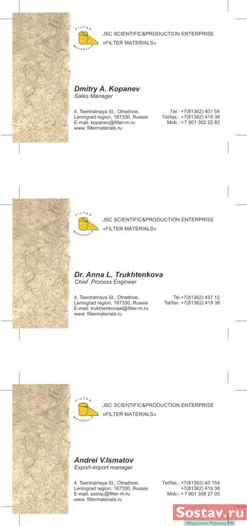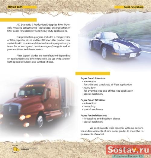 Price подготовил "Фильтровальные материалы" к международной выставке в ГерманииСпециалисты РА "Price" изготовили сувенирную и представительскую продукцию для компании "Фильтровальные материалы", которая с 26 февраля по 2 марта 2007 года принимает участие в международной конференции и выставке Filtech 2007 в Германии на термальном курорте Висбаден. Научно-производственное предприятие "Фильтровальные материалы" занимается выпуском фильтровальных материалов для автомобильной промышленности. Компания "Фильтровальные материалы" уже не первый раз принимает участие в международной конференции и выставке по технологиям фильтрации и сепарации Filtech. Filtech является единственным европейским форумом, посвященным технологиям сепарирования и фильтрации, на который приезжают делегаты со всех пяти континентов. Для компании "Фильтровальные материалы" специалисты рекламного агентства "Price" подготовили сувенирную и представительскую продукцию к выставке Filtech 2007: евробуклет, визитки, папки, листовки, ручки, блокноты, а также провели фотосессию и изготовили презентационный ролик. Это уже не первый пример сотрудничества РА "Price" и "Фильтровальных материалов": дизайнеры агентства к предыдущей выставке в Германии для предприятия "Фильтровальные материалы" проводили редизайн корпоративного стиля, подготавливали сувенирную и представительскую продукцию в соответствии с измененным стилем и разрабатывали дизайн выставочного мобильного стенда и его изготовление. ![]() ![]() ![]() ![]() ![]() ![]() |