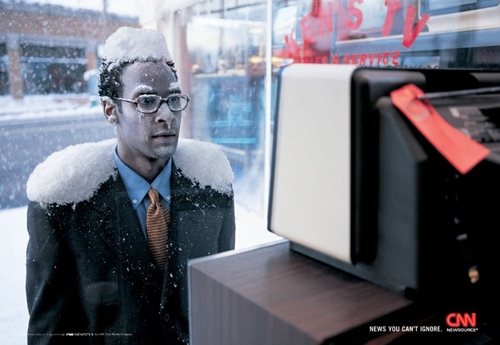 Теперь мимо CNN не пройдешьНа улице снег и стужа, а вы стоите перед витриной магазина, торгующего телевизорами? В этом нет ничего удивительного, ведь на экране канал CNN, мимо которого просто невозможно пройти мимо. Надпись: "Новости, которые вы не можете игнорировать" Агентство: неизвестно
