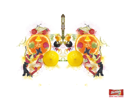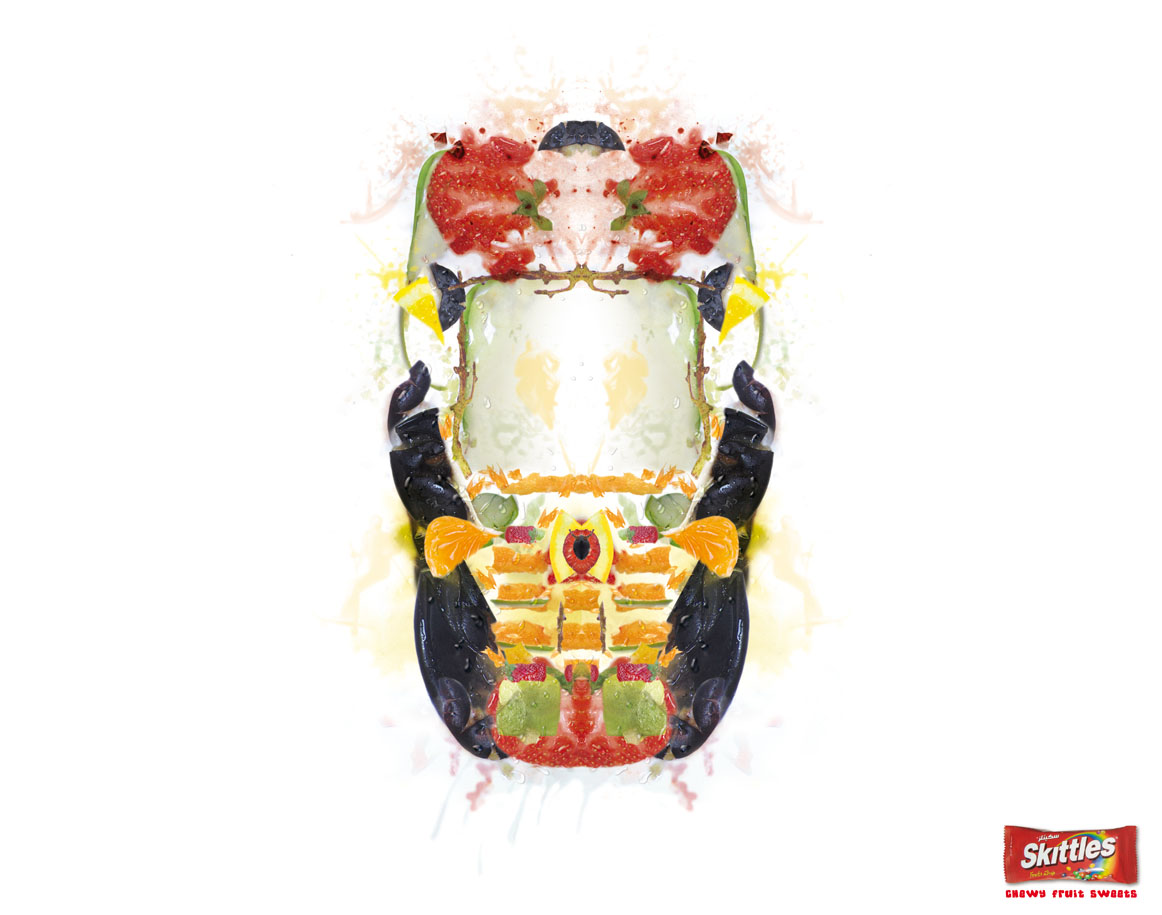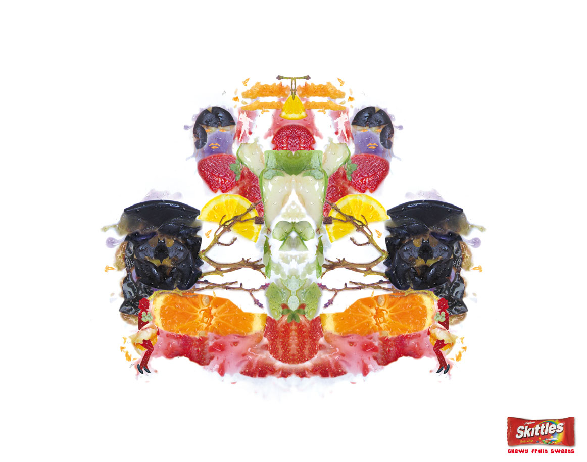 Тест Роршаха от агентства ImpactBBDO для SkittlesРекламное агентство ImpactBBDO решило применить необычный способ для рекламы жевательных конфет Skittles. На принтах из мятых фруктов составлены кляксы, в которых каждый человек может разглядеть что-то свое, например, болид F1, мобильный телефон или джойстик от игровой приставки. Такая методика у психологов называется тестом Роршаха (тест "чернильных пятен"), она позволяет составить психологический портрет человека. Надпись: "Жевательные фруктовые конфеты" Агентство: ImpactBBDO, Дубай, ОАЭ Творческий директор: Peter Russell Арт директор: Srinivasa Rao Копирайтер: Sony Raj Иллюстратор: Sandeep Pradhan Фотограф: Srinivasa Rao Дизайнер: Binoy Mohan Клиентский сервис: Ziad Zoueihed Релиз: Февраль 2007 |