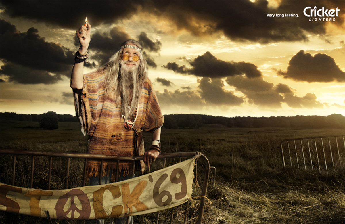 Рекламный принт от агентства KING для зажигалок CricketПеред вами реклама зажигалок Cricket, созданная шведским агентством KING. Смысл в том, что зажигалка в руке старого хиппи горит еще со времен легендарного фестиваля рок-музыки Вудсток, который проводился в 1969 году в Америке. Надпись: "Очень долго длящийся." Агентство: KING, Стокгольм, Швеция Творческий директор: Frank Hollingworth Арт директор: Tim Zastera Копирайтер: Patrick Herold Фотограф: Carl-Johan Paulin Ретушер: TOUCHME Stockholm |