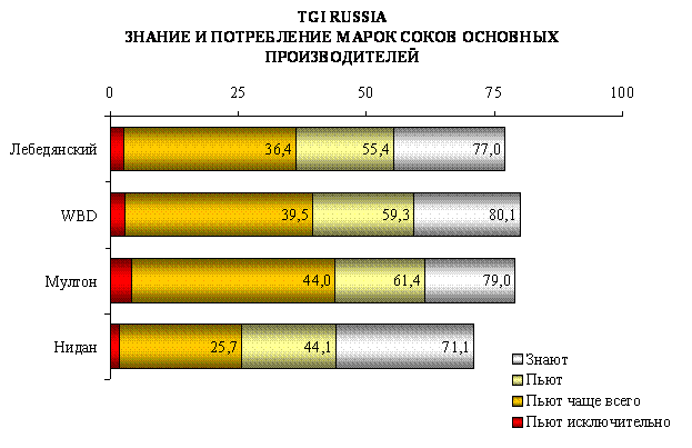 Pост объемов потребления соков в России продолжаетсяРазвитие рынка соков в России во многом обусловлено стремлением Россиян вести здоровый образ жизни, что на фоне увеличения доходов населения позволяет им потреблять более дорогие, по сравнению с газированными напитками, соки.По данным TGI Russia, за пять лет доля потребителей соков в России увеличилась более чем на 20% и составила в 2006 году 69%. Больше всего потребителей соков живут в крупных городах. По данным TGI Russia, в 2006 году, доля потребителей соков в Москве и Санкт-Петербурге составила 82%. Объем потребления соков на душу населения в крупных городах стремится все ближе к уровню насыщения. Но рост объемов потребления соков в России все еще продолжается и происходит за счет увеличения доли потребителей соков в небольших городах. ![]() База: TGI Russia, Потребители соков, 2006 Более всего знакомы российским потребителям марки "Вимм-Биль-Данна" - "Rio Grande", "J-7", "100% Gold" и "Любимый Сад". Эти марки знают не менее 80% потребителей соков. Однако в 2006 году больше всего потребителей пили марки "Мултона" - "Rich", "Nico" и "Добрый". Потребление марок соков премиального ценового сегмента наиболее характерно для потребителей, которым при выборе важны качество и известность марки и наименее характерно для тех, кто при выборе ориентируется на цену и качество. А вот потребление соков нижнего ценового сегмента не характерно для какой-либо определенной группы потребителей. Отчасти, это связано с тем, что соки данного сегмента представлены не только в стандартной, но и большой (семейной) упаковке, которая больше всего подходит для потребления в компании или в кругу семьи. Нижний ценовой сегмент самый популярный среди потребителей в России, именно его развитие во многом определяет рост сокового рынка в России на протяжении последних нескольких лет. |