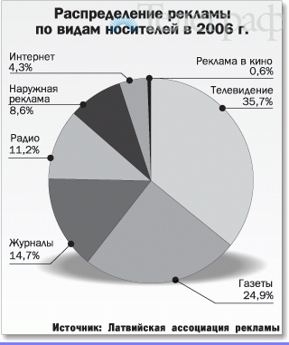 Латвия. "Двигатель торговли" облюбовал ТВ и прессуТрадиционные рекламоносители в борьбе за бюджеты пока значительно опережают "новичков"